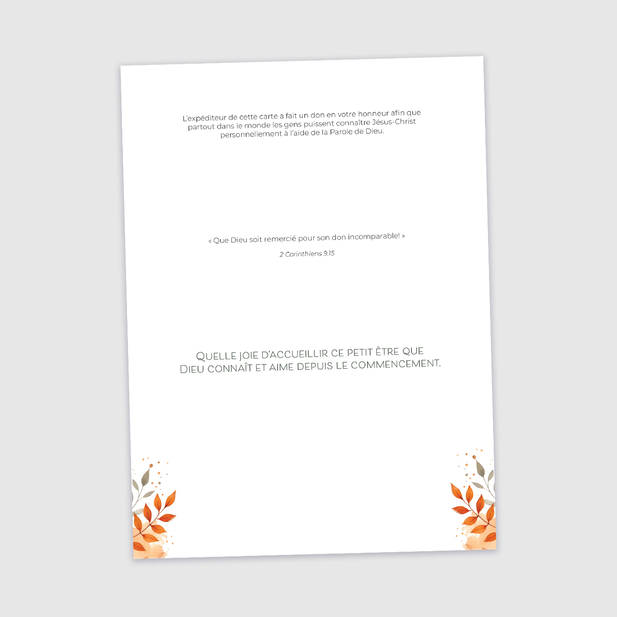 « Que Dieu soit remercié pour son don incomparable! » - 2 Corinthiens 9.15