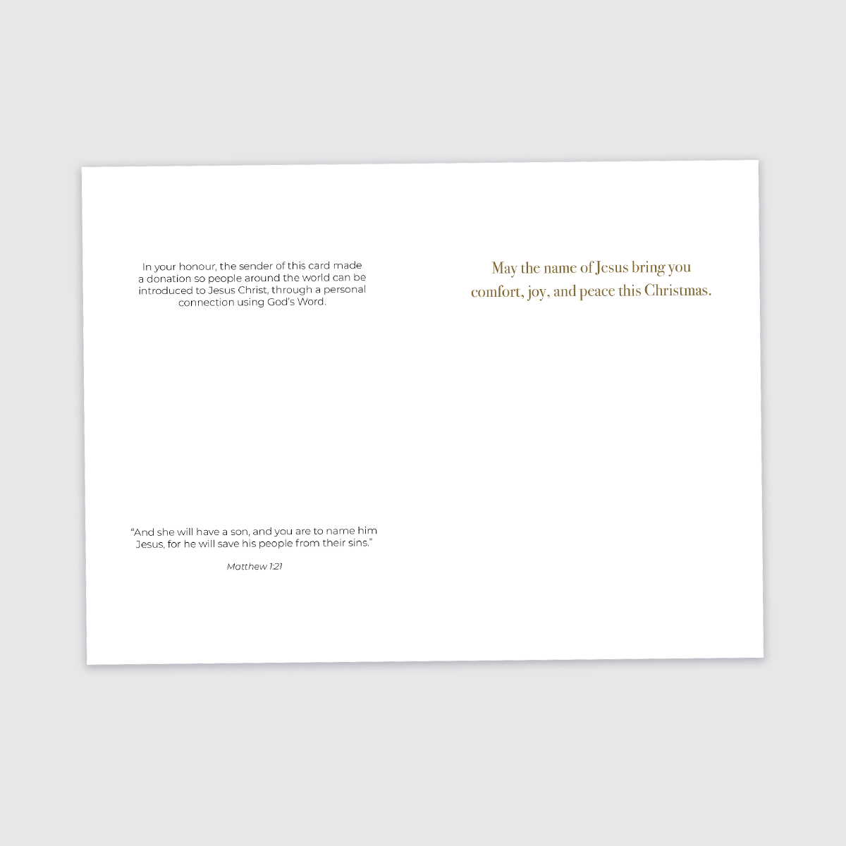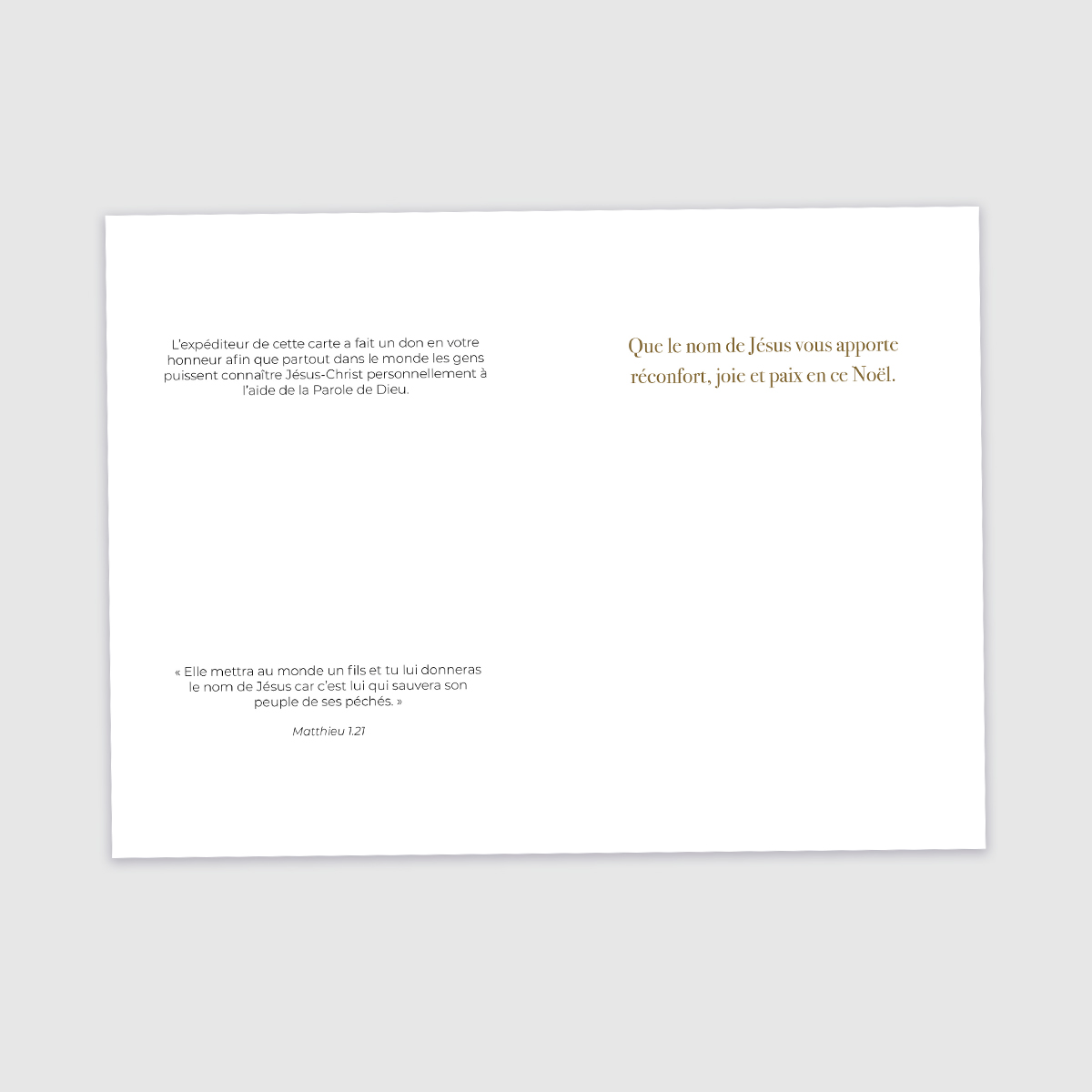 Que le nom de Jésus vous apporte réconfort, joie, et paix en ce Noël.