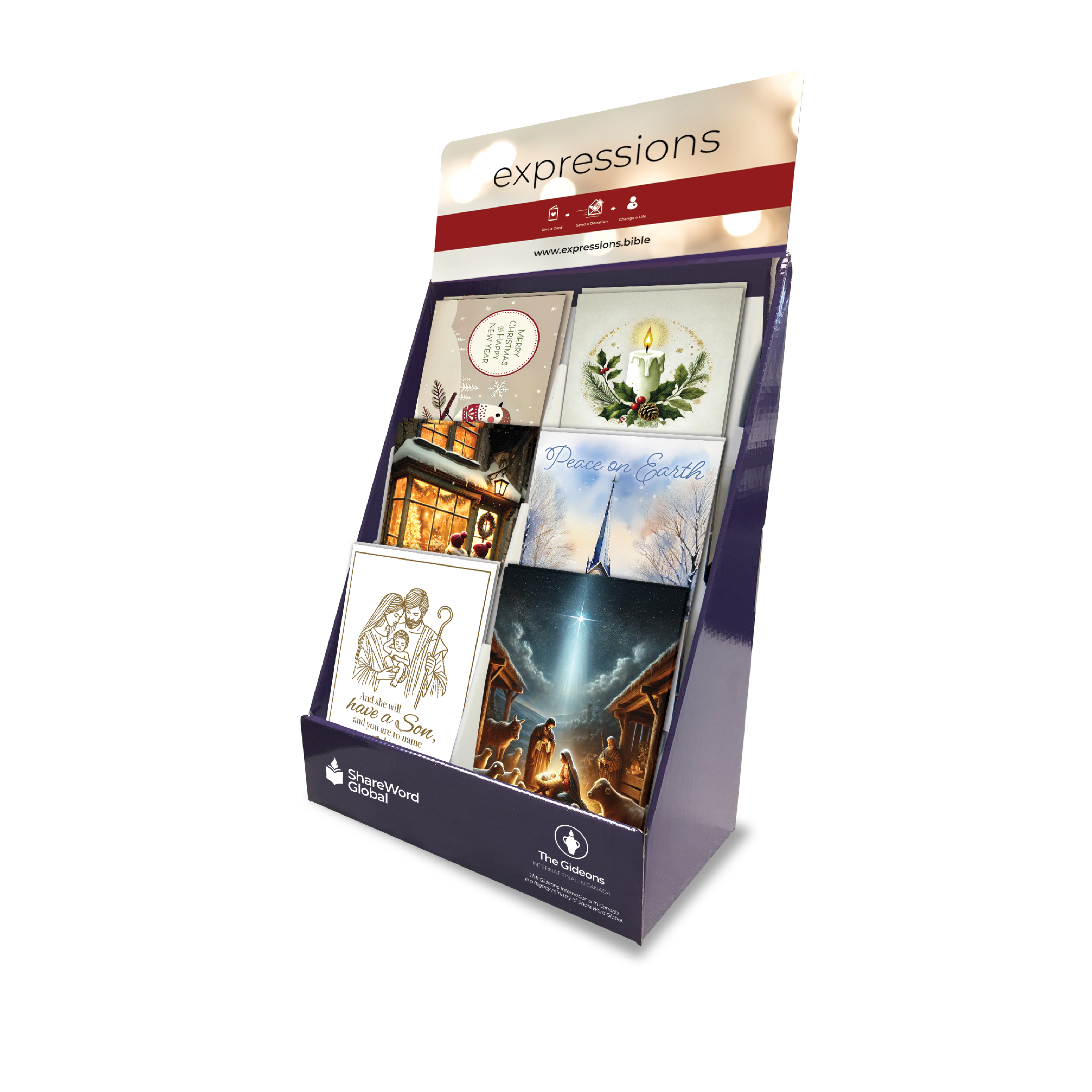 However, using cards from this display isn't just about finding the right words to say; it's an act of giving back. With every card chosen and a donation made, you're helping to share the love of Christ by placing copies of God’s Word in the hands of people around the world.